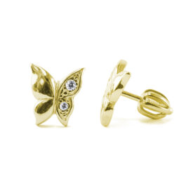 Zlaté náušnice Motýli s brilianty