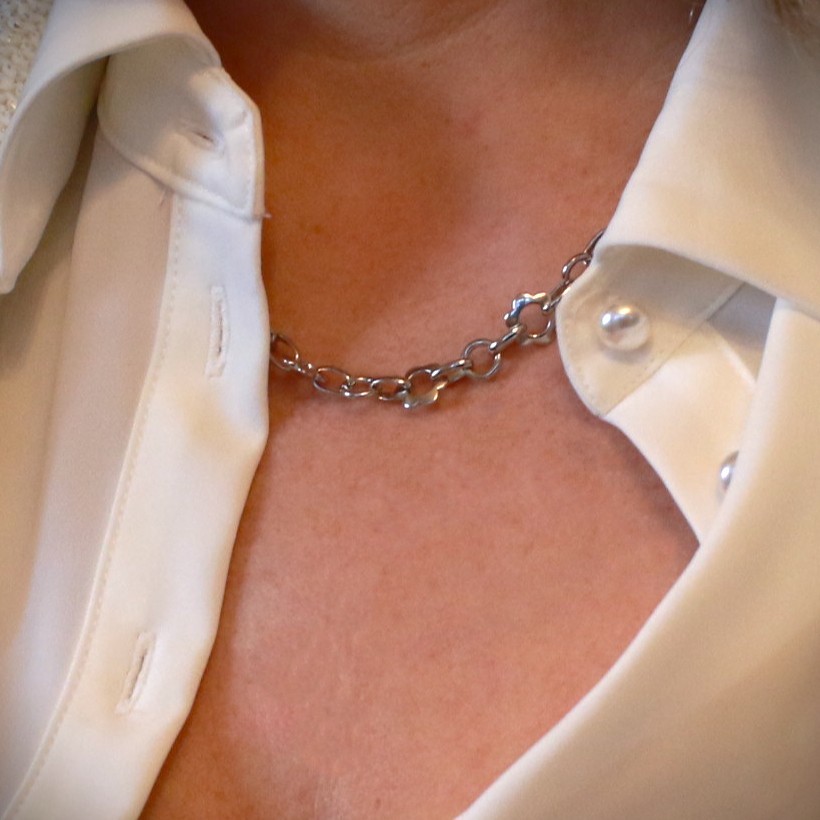 Tento unikátní náhrdelník je vyrobený ze stříbra 925/1000 a je rhodiovaný.
