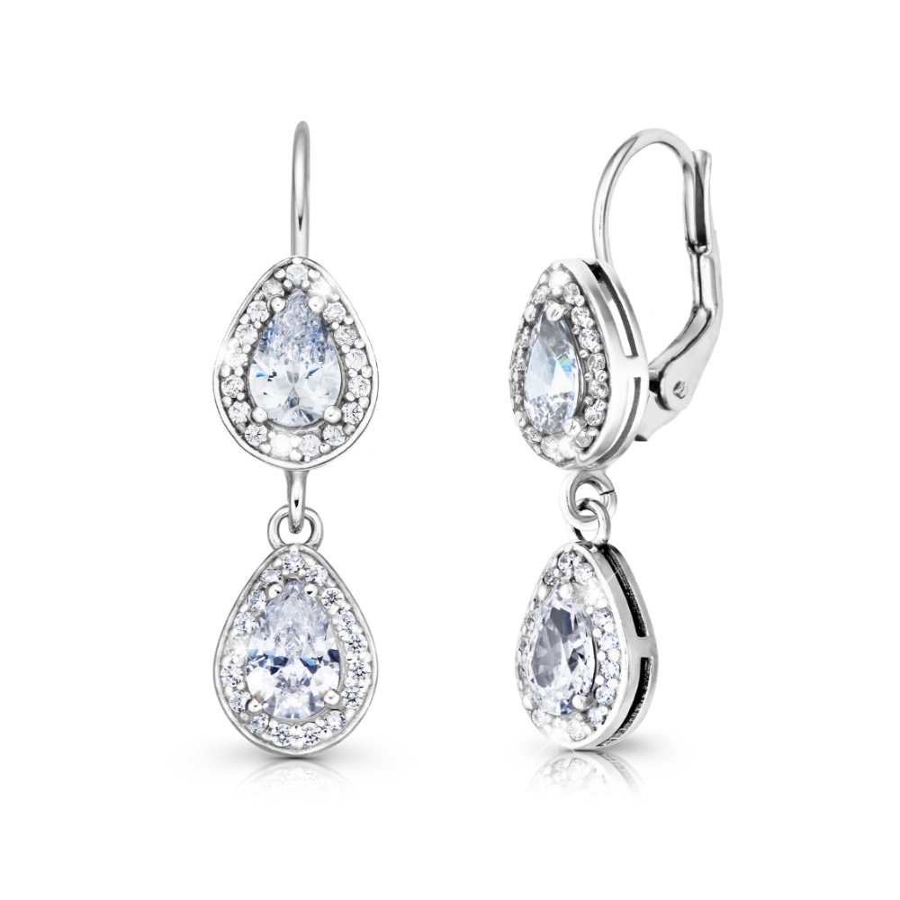 Designové a jedinečné stříbrný náušnice Ag 925/1000 o hmotnosti 3,38 g se dvěma zirkony barvy dle vašeho výběru o průměru 5x6mm a je osázen 17 zirkony o průměru 1mm kolem centrálního kamene. Náušnice představují jeden z našich luxusních a oblíbených produktů.