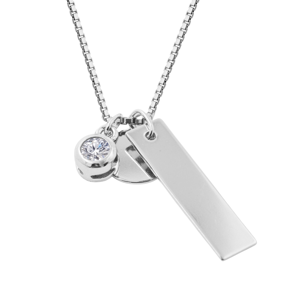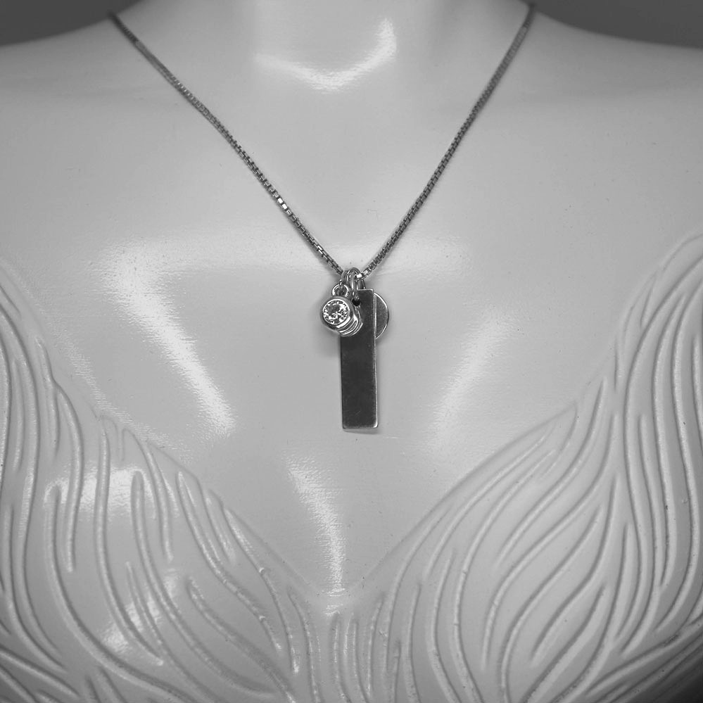 Personalizovaný stříbrný náhrdelník Jocelyn Destičky a kamínek s možností rytiny