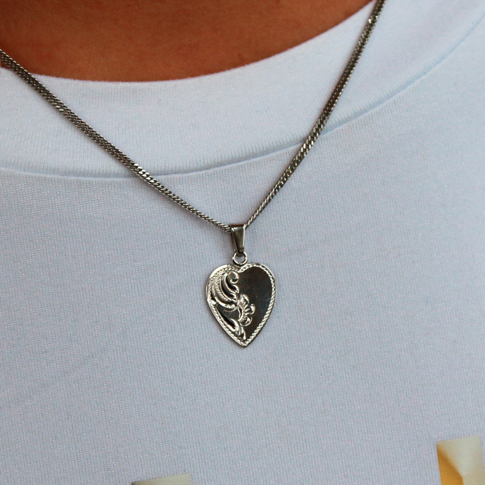 Stříbrný přívěšek ve tvaru srdce s krásnou rytinou. Elegantní a okouzlující!