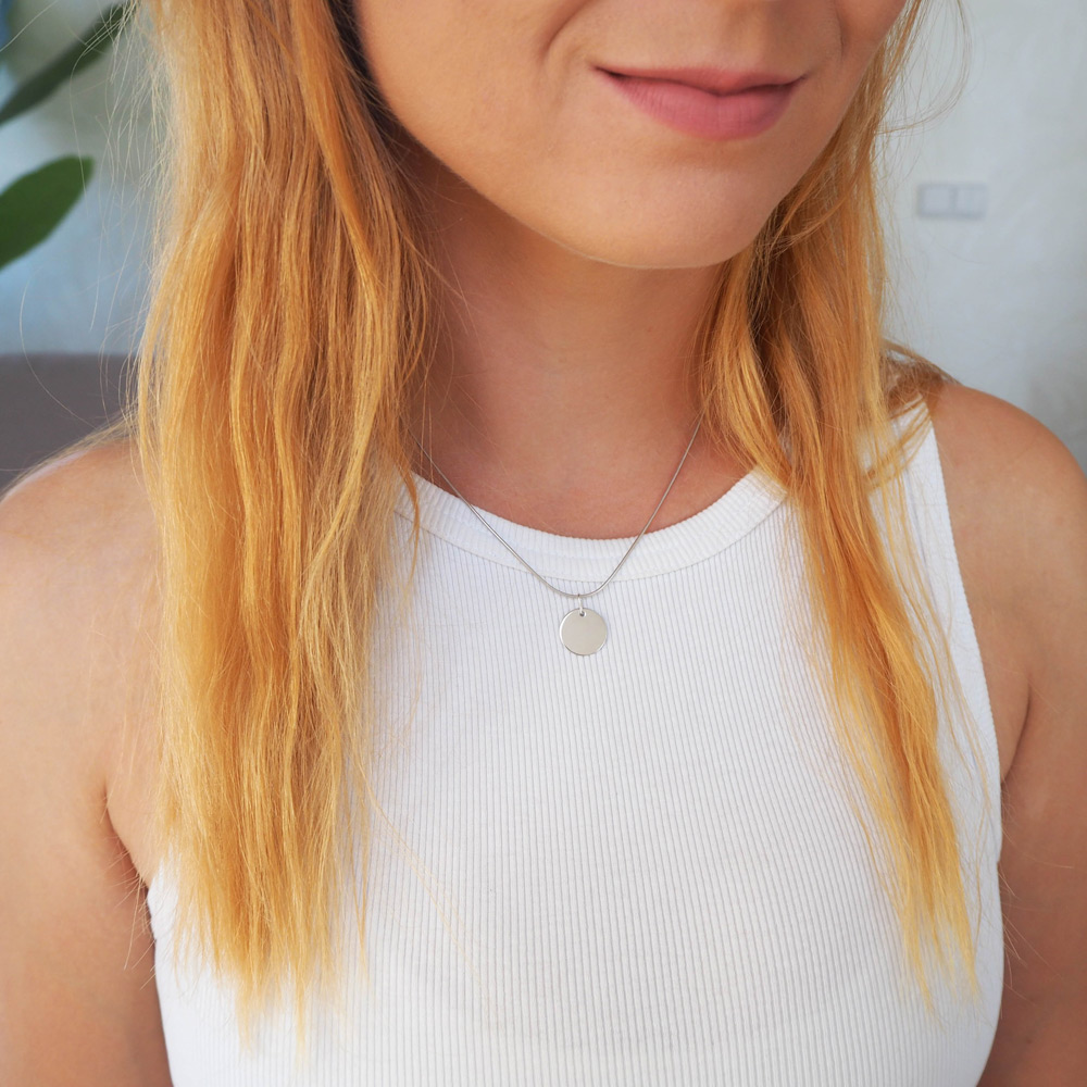 Malý stříbrný přívěšek ve tvaru kruhu s vaší vlastní rytinou. Elegantní a okouzlující!