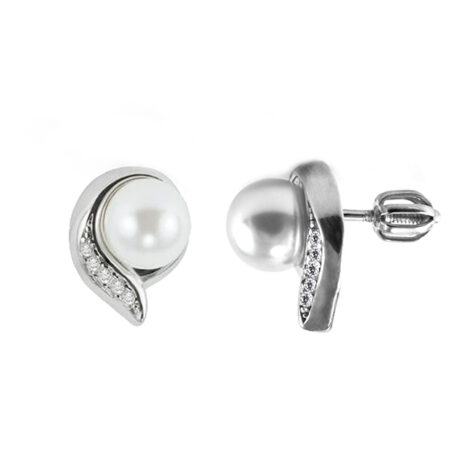 Stříbrné náušnice osazené perlami Swarovski o průměru 10 mm a doplněné o čiré zirkony, které Vám dodají neodolatelnou eleganci.