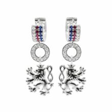 Náušnice s originálním designem zdobené zirkony v barvách trikolory. Náušnice jsou zdobeny ověskem – Český lev nebo mohou být i bez ověsku – samotná trikolóra.