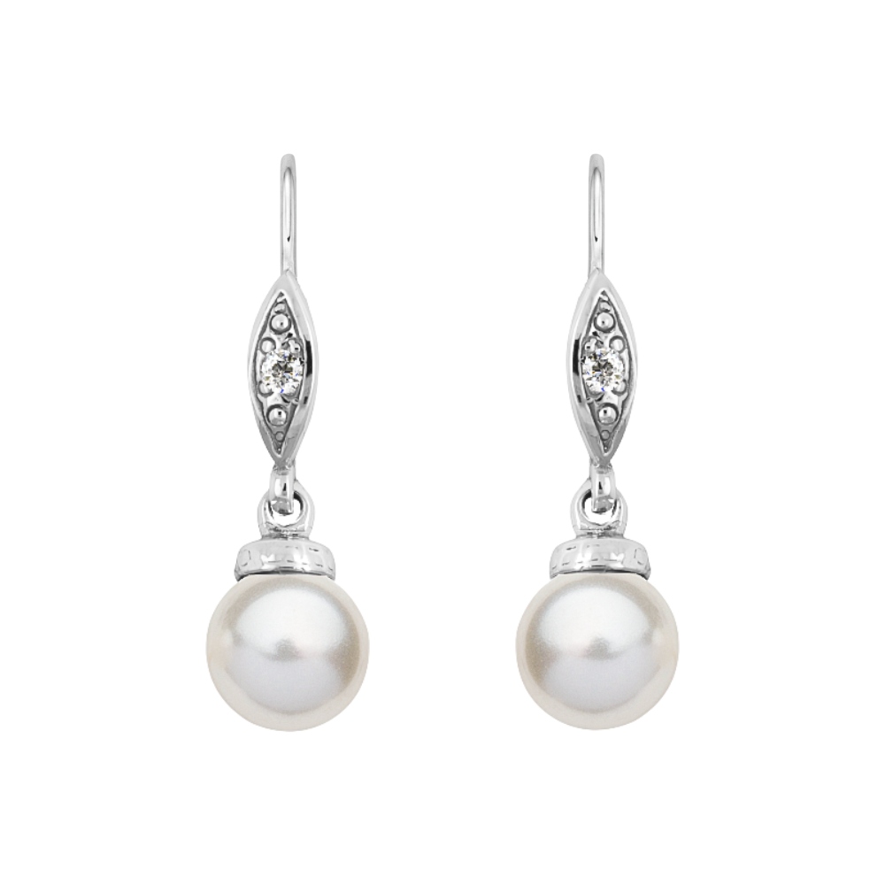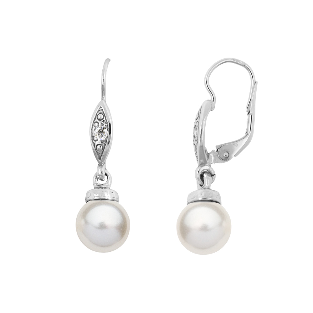 Nádherné stříbrné náušnice s křišťálovou perlou Swarovski o průměru 5 mm a zirkony.