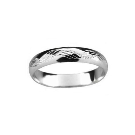 Stříbrné snubní prsteny klasického půlkulatého tvaru, lesklé, doplněné ruční rytinou. Dobře se nosí a svým designem v sobě propojují tradici s moderními liniemi. Prsteny jsou unisexové, stejné pro dámu i pro pána.