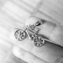 Stříbrný přívěsek představující cyklistické kolo pro všechny milovníky tohoto krásného sportu.