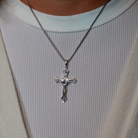 Stříbrný přívěsek – Kříž s Kristem a Božím okem – velký