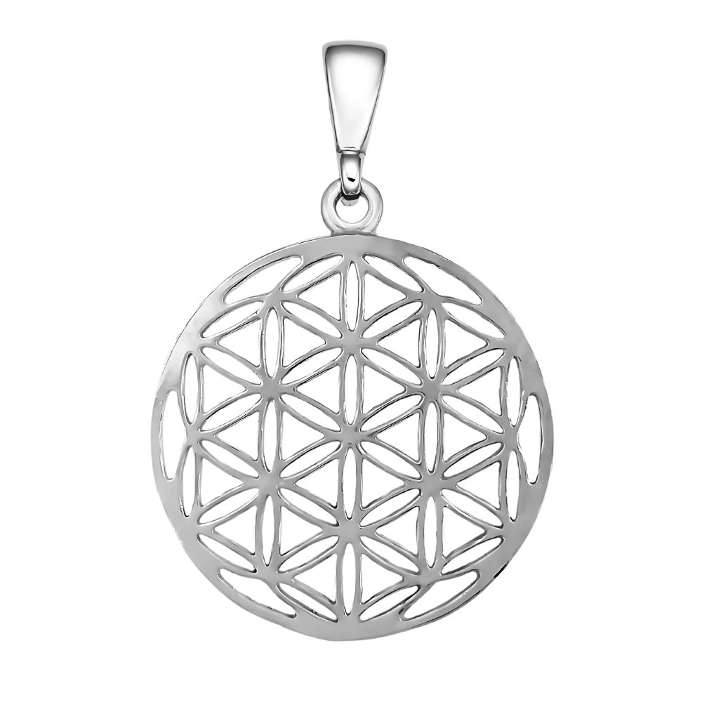 Květ života je snad nejdůležitějším symbolem posvátné geometrie. Obsahuje v sobě semínko života – tedy 7 překrývajících se kruhů. Mnoho kultur světa už po tisíciletí věří, že květ života je základem, šablonou pro všechno, co na světě existuje. Obsahuje v sobě i další symboly, jako jsou Merkaba nebo Metatronova krychle, splňuje zlatý poměr i Fibonacciho spirálu. Stříbrný přívěsek květ života symbolizuje stvoření a připomíná nám, že všechno existuje v jednotě. Symbolizuje matematický a logický řád celého světa a propojení mezi živými bytostmi a životem samým.