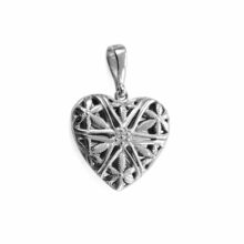 Stříbrný přívěsek ve tvaru srdce s rostlinnými motivy s krásnými rytinami a detaily. Výrazný a ve tvaru medailonku, který Vám zaručeně dodá na originalitě!