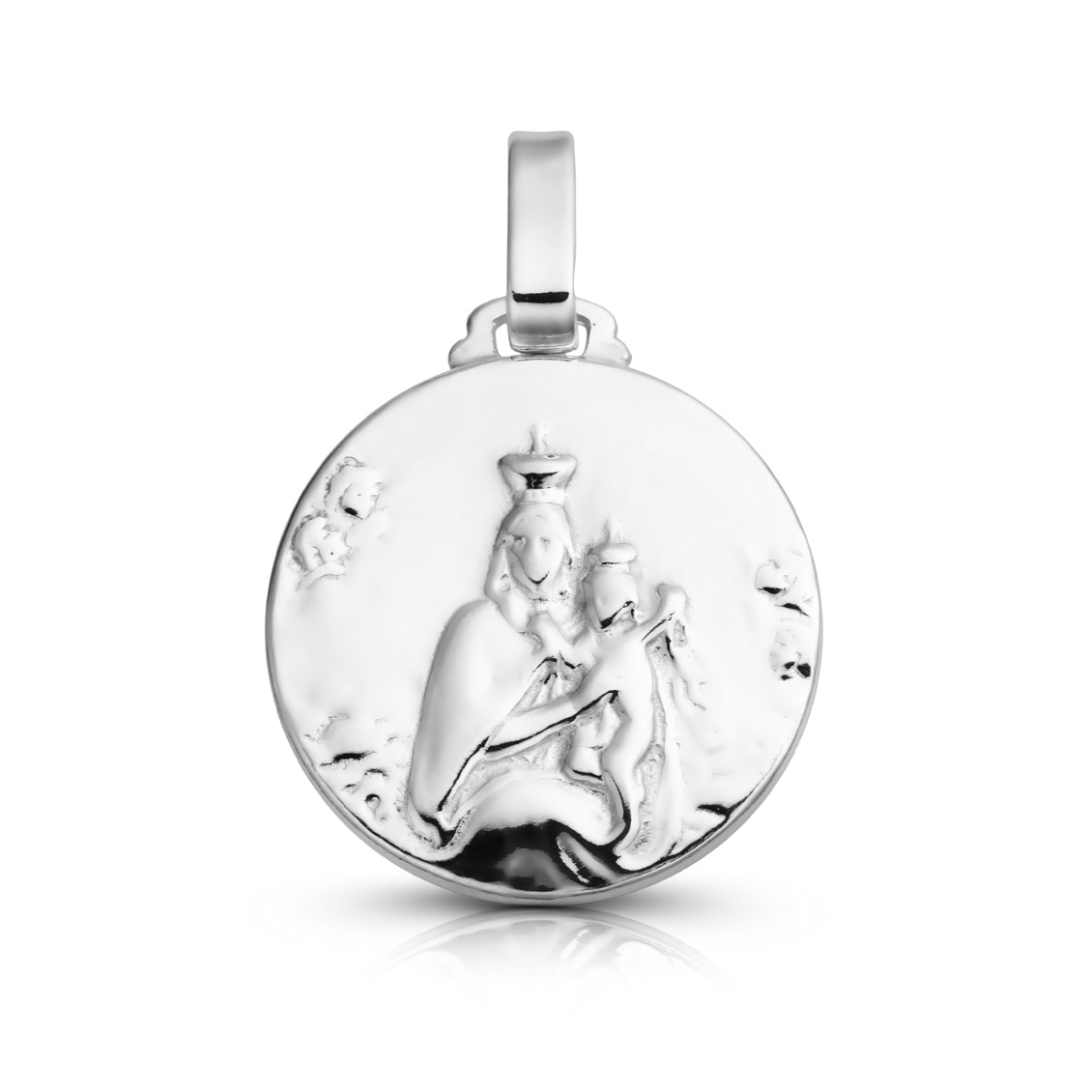 Elegantní medailon, který ve svém středu plasticky znázorňuje Madonnu s dítětem.