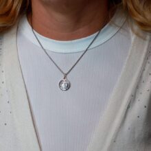 Přívěsek je doplněný o povrchovou úpravou rhodiování jako efektivní ochrana stříbra i pro jeho luxusnější vzhled barvy bílého zlata.