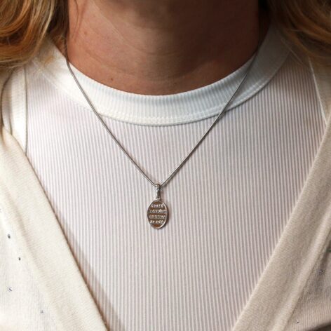 Přívěsek je doplněný o povrchovou úpravou rhodiování jako efektivní ochrana stříbra i pro jeho luxusnější vzhled barvy bílého zlata.