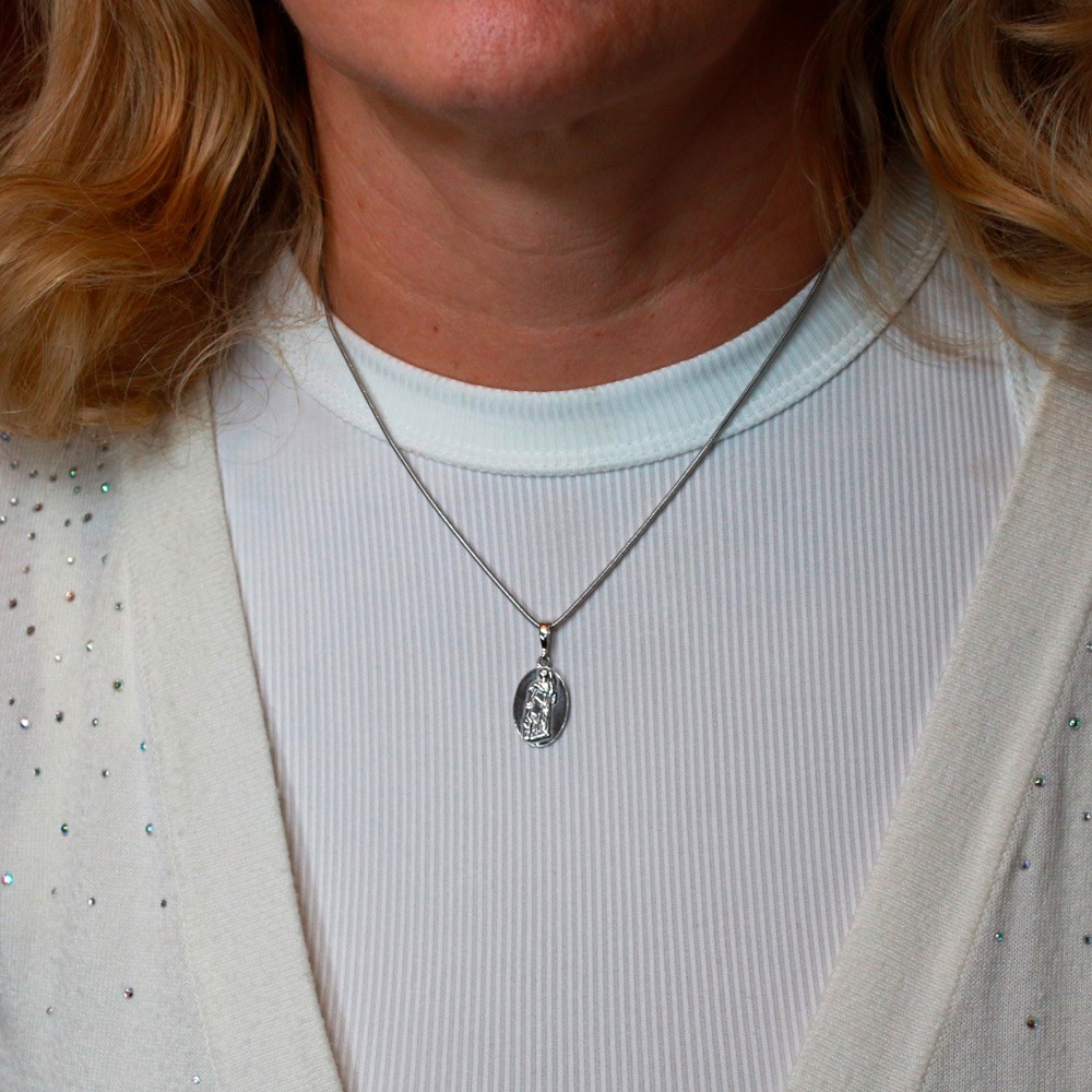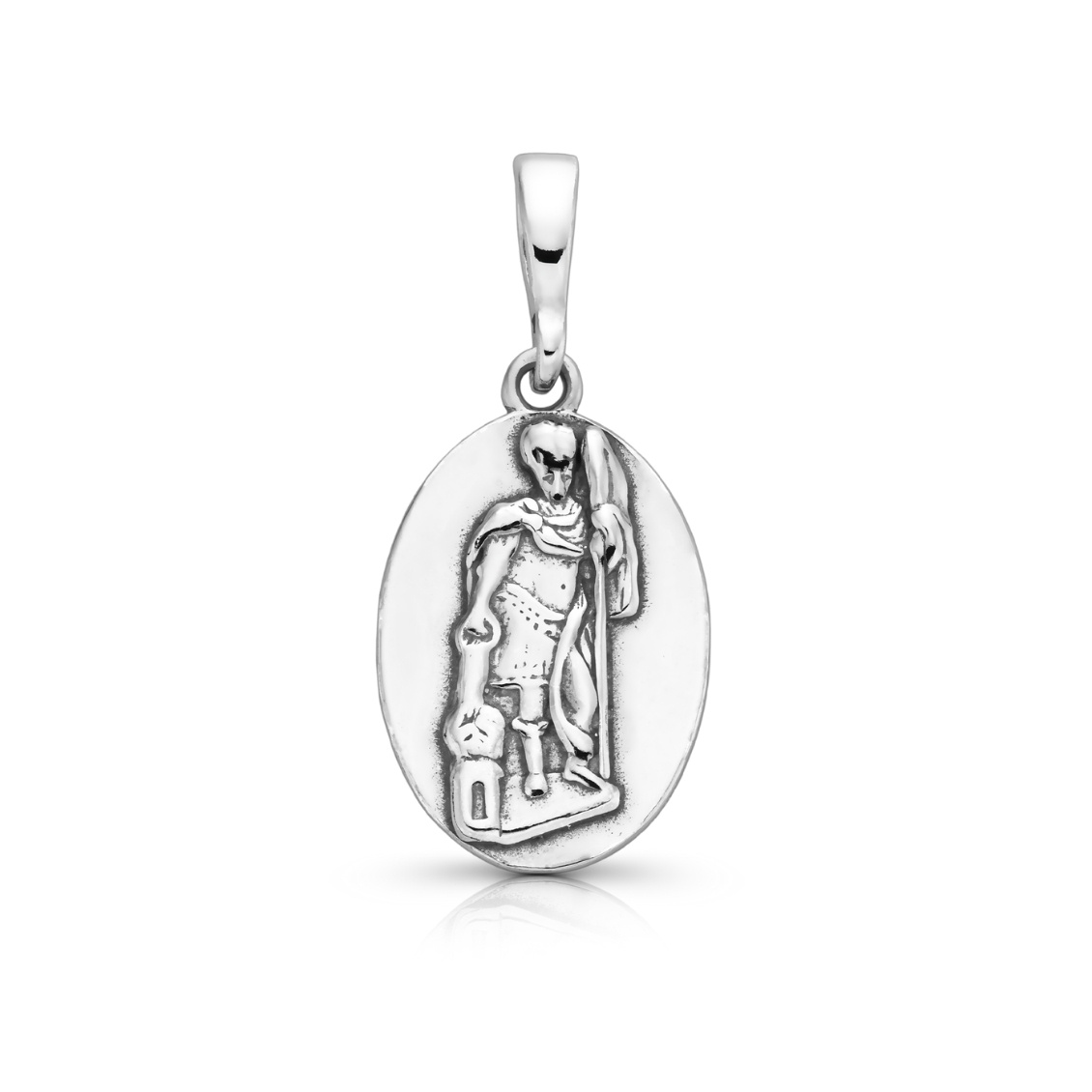 Stříbrný přívěsek – zobrazení svatého Floriána, představujícího patrona všech hasičů, kominíků, zedníků a kovářů.