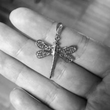 Stříbrný přívěšek znázorňující vážku.