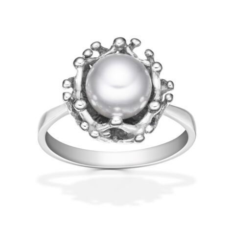 Designový, výrazný stříbrný prsten s perlou značky Swarovski Elementsy. Vhodný pro každou příležitost.