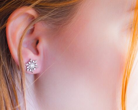 Zlaté náušnice ve tvaru sněhových vloček v luxusní verzi s přírodními brilianty. Zapínání na šroubek (na balonek), které je mimořádně bezpečné zapínání náušnic (nemusíte se bát, že jednu ztratíte).