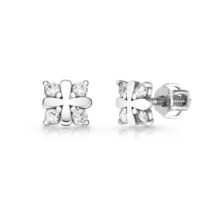 Luxusní, vysoce elegantní, náušnice osazené čtyřmi zirkony na každé náušnici. Hmotnost 1,50 g. Luxus který zaujme každého. Vhodné pro denní i večerní příležitosti.