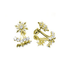 Každá zlatá náušnice je osázena šesti zirkony o průměru 3mm a dalšími šesti o průměru 1,5mm. Design je navržen tak, že spodní závěs je umístěn za ucho, a tak je vytvořen originální efekt, podtrhující unikátní vyznění tohoto speciálního páru náušnic.