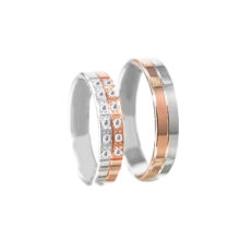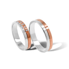 Snubní prsteny v kombinaci lesklého bílého a lesklého růžového zlata odděleného od sebe drážkou zhotovenou diamantovým brusem, která jim dodává eleganci. Na ruce vypadají mladistvě a dobře se nosí. Profil prstenů je rovný. Dámský prsten je ozdoben kulatými zirkony nebo brilianty o průměru 1,3mm. Pánský prsten je bez kamenů. Oba prsteny jsou speciálně povrchově upravené metodou zvanou posalux, která jim dodává vysoký lesk a nádech luxusu.