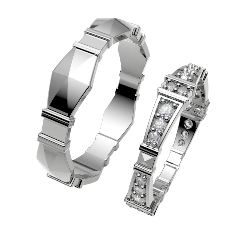 Toužíte po opravdu luxusním, propracovaném designu snubních prstenů? Tento vzor spojuje klasickou eleganci s nejmodernějšími technologii, každý pár je nejprve pomocí 3D grafického programu upraven na vaše velikosti a poté následuje náročná ruční výroba a dohotovení.