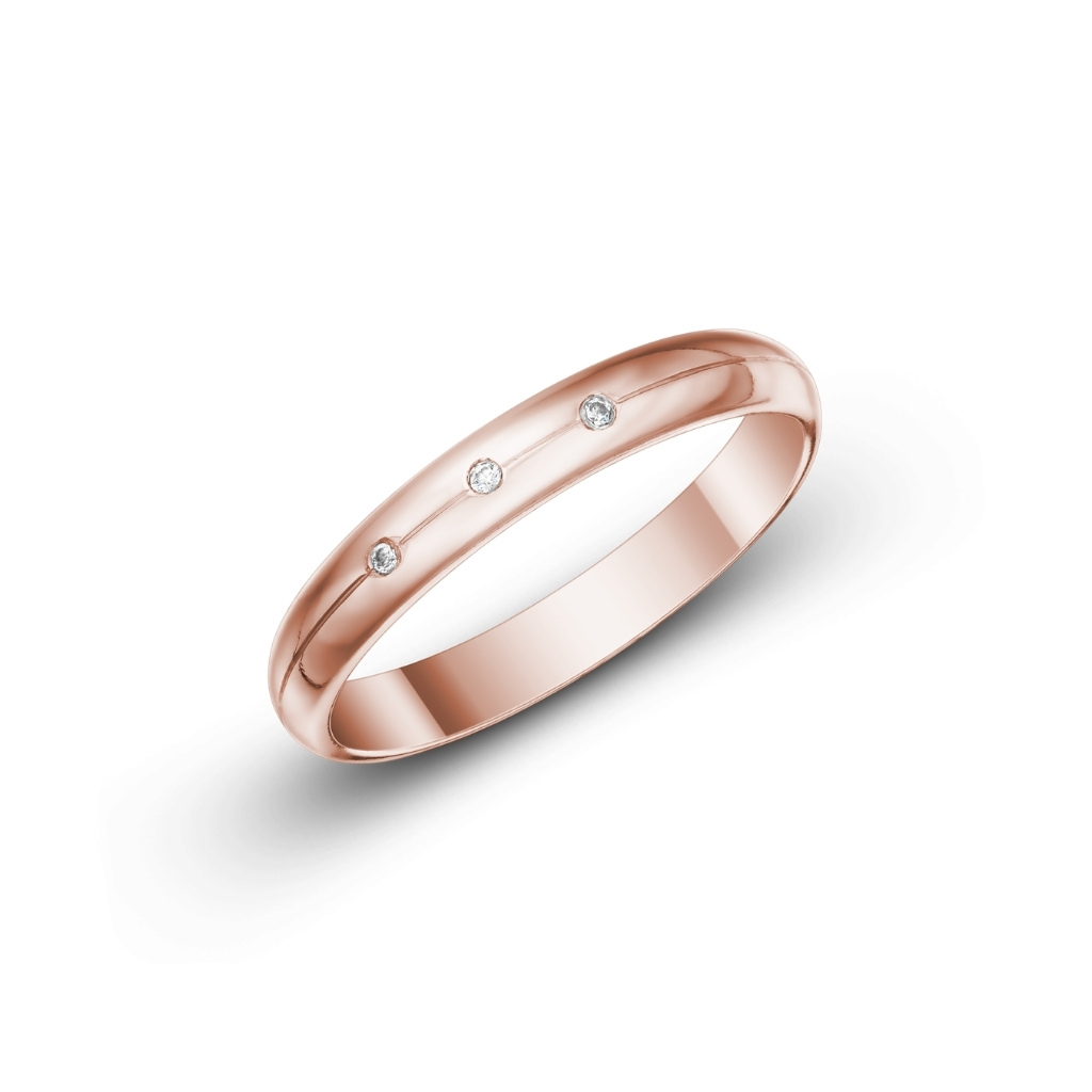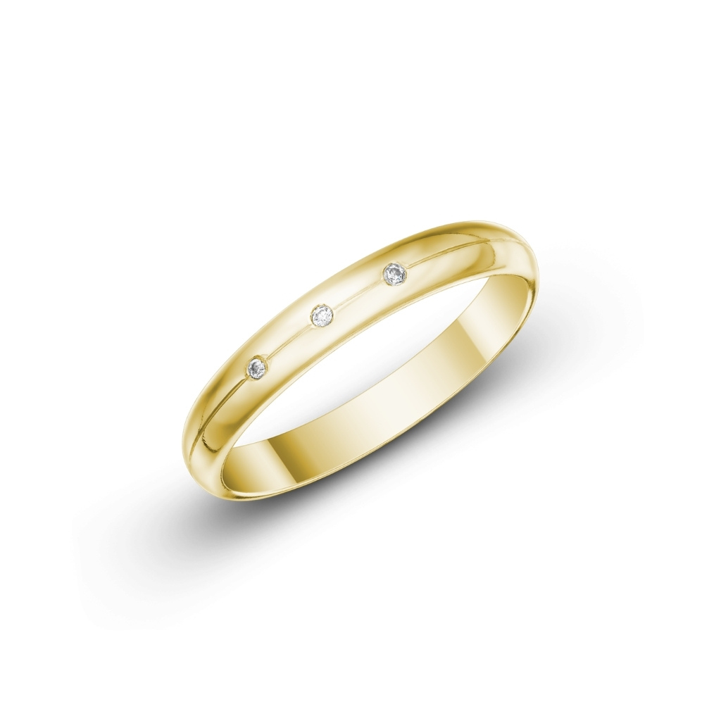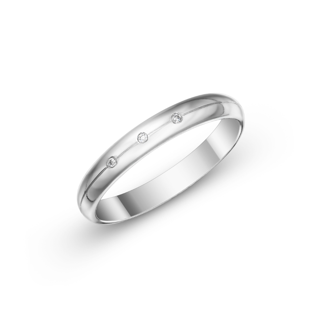 Krásné půlkulaté snubní prsteny ve vysokém lesku. Dámská varianta je doplněna 3 zirkony o průměru 1,3 mm. Pánský prsten je bez kamenů.