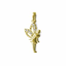 Zlatý přívěsek ve tvaru kouzelné víly s křídly zdobenými drobnými třpytivými zirkony.